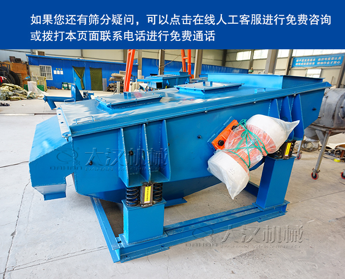 以上就是石英砂礦用振動(dòng)篩進(jìn)行篩分工作時(shí)要注意的問(wèn)題,如果您還有篩分疑問(wèn),可以點(diǎn)擊在線(xiàn)人工客服進(jìn)行免費(fèi)咨詢(xún)或撥打本頁(yè)面聯(lián)系電話(huà)進(jìn)行免費(fèi)通話(huà)。買(mǎi)機(jī)石英砂礦用振動(dòng)篩,就選<大漢機(jī)械>!