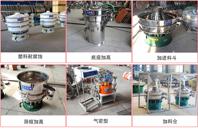 4、特殊要求: 根據(jù)客戶(hù)特殊的生產(chǎn)需求,如特殊形狀的篩箱、多層篩網(wǎng)結(jié)構(gòu)、加進(jìn)料斗、加料倉(cāng)等。