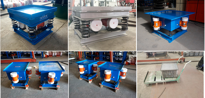 振動(dòng)平臺(tái)于生產(chǎn)流程中用于把顆粒、粉狀物料從散裝到塊狀、形狀等形式的轉(zhuǎn)變,主要用于物料的震實(shí),減少物料內(nèi)的空氣和縫隙,一般和料倉(cāng)配套使用,在翻砂鑄造行業(yè)、人防門的填充方面以及物料灌裝方面用的一直很廣泛。