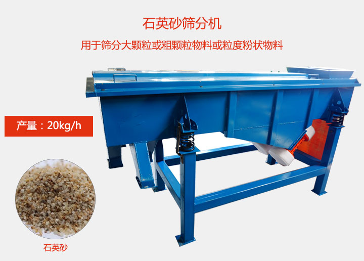 石英砂篩分機(jī)是用于石英砂粉末和顆粒的篩選和分級(jí)而設(shè)計(jì)的長(zhǎng)方形振動(dòng)篩分機(jī),主要針對(duì)產(chǎn)量要求處理量大,產(chǎn)品附加值不是很高的產(chǎn)品工藝使用,性價(jià)比較高。